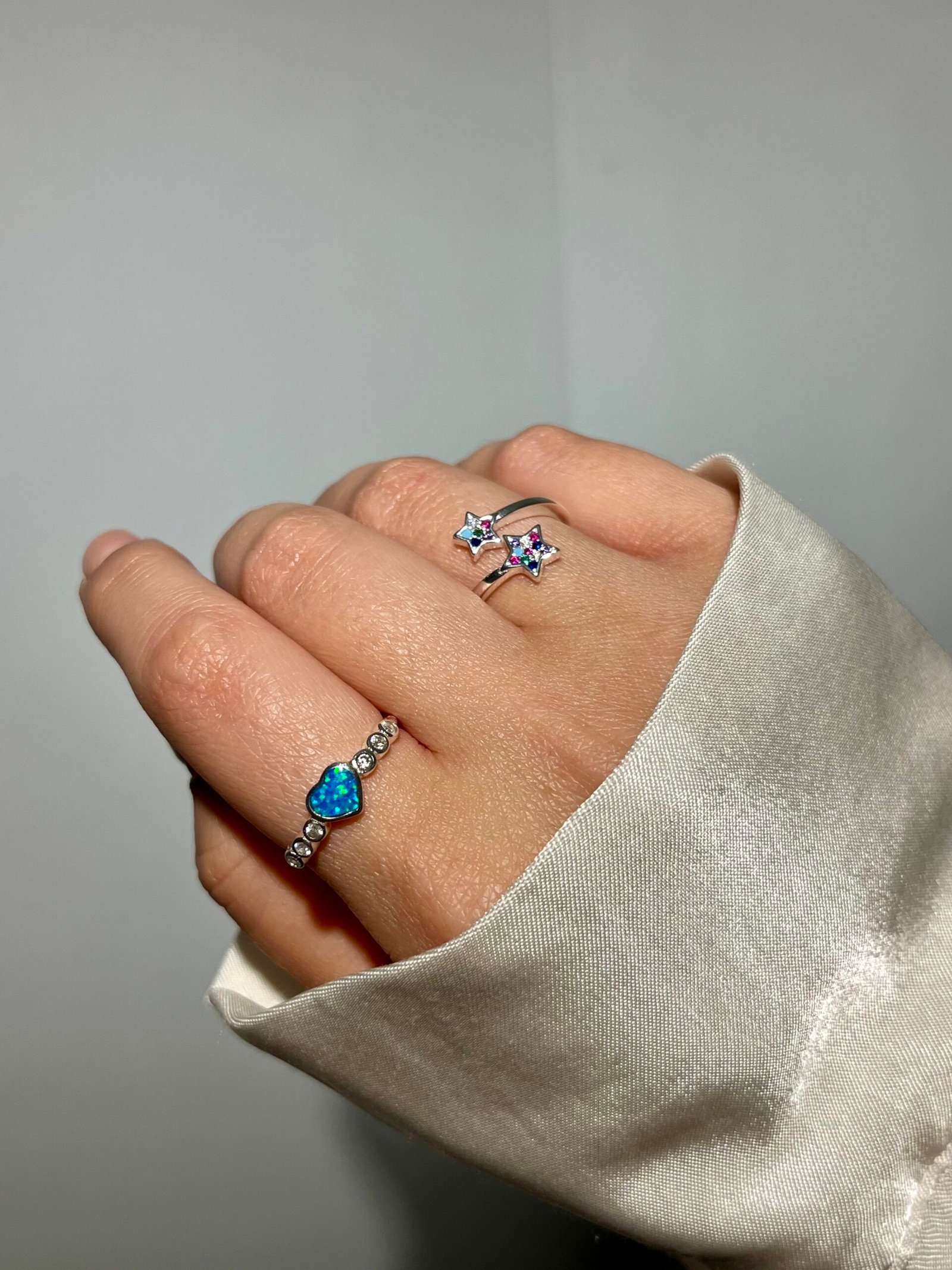 El Anillo Estrellas de Colores, es ajustable para adaptarse desde la talla 14 a 20. Presenta 2 estrellas con brillantes circones multicolores. El complemento perfecto para tus look casuales.