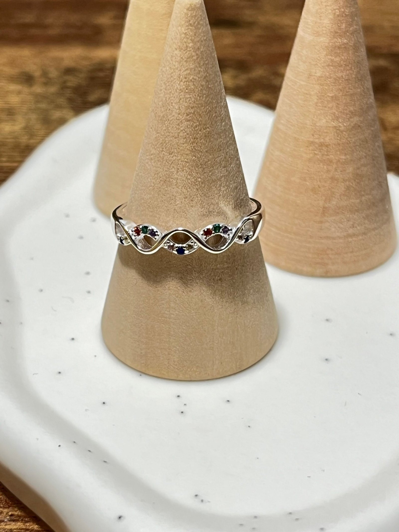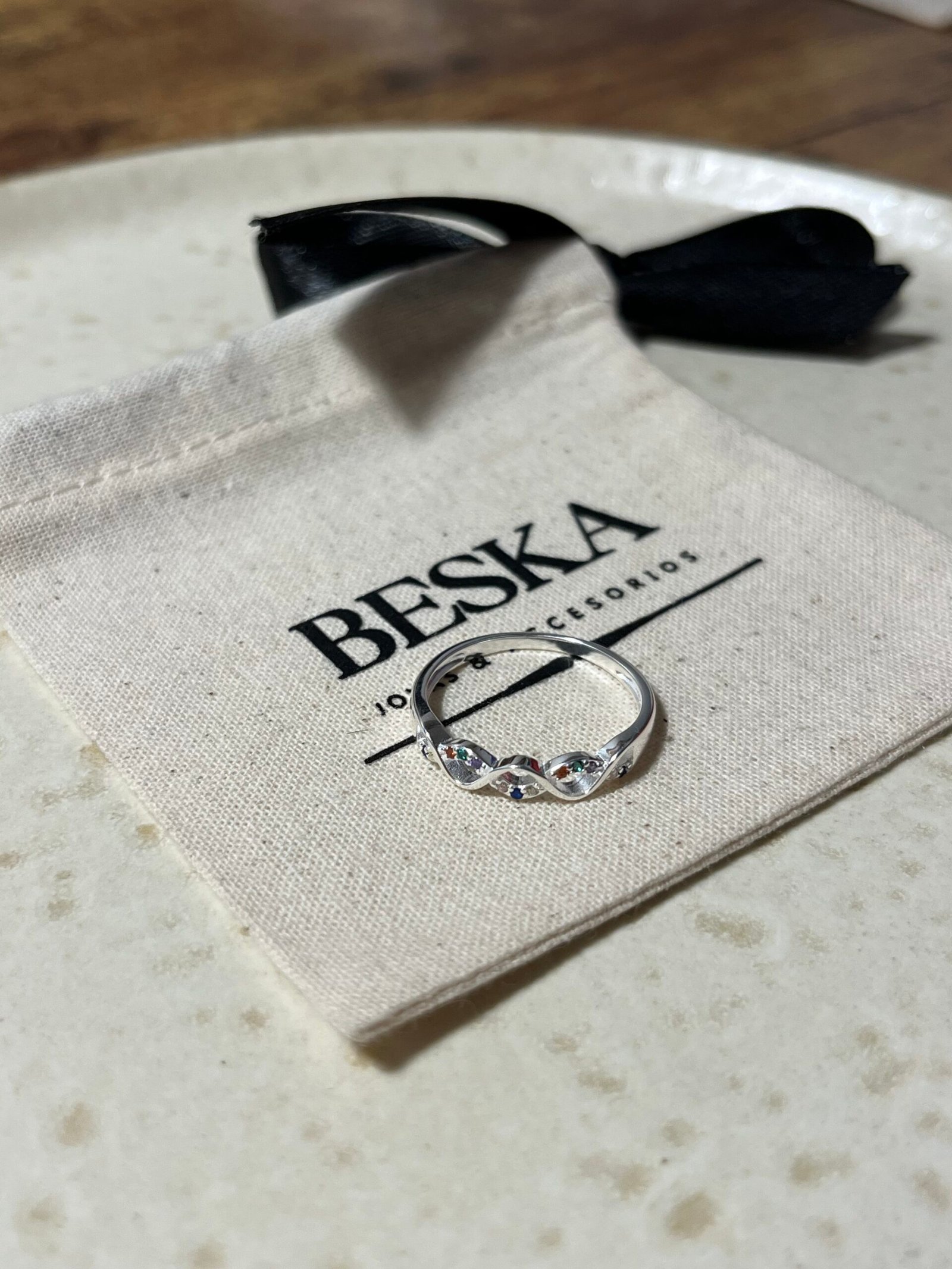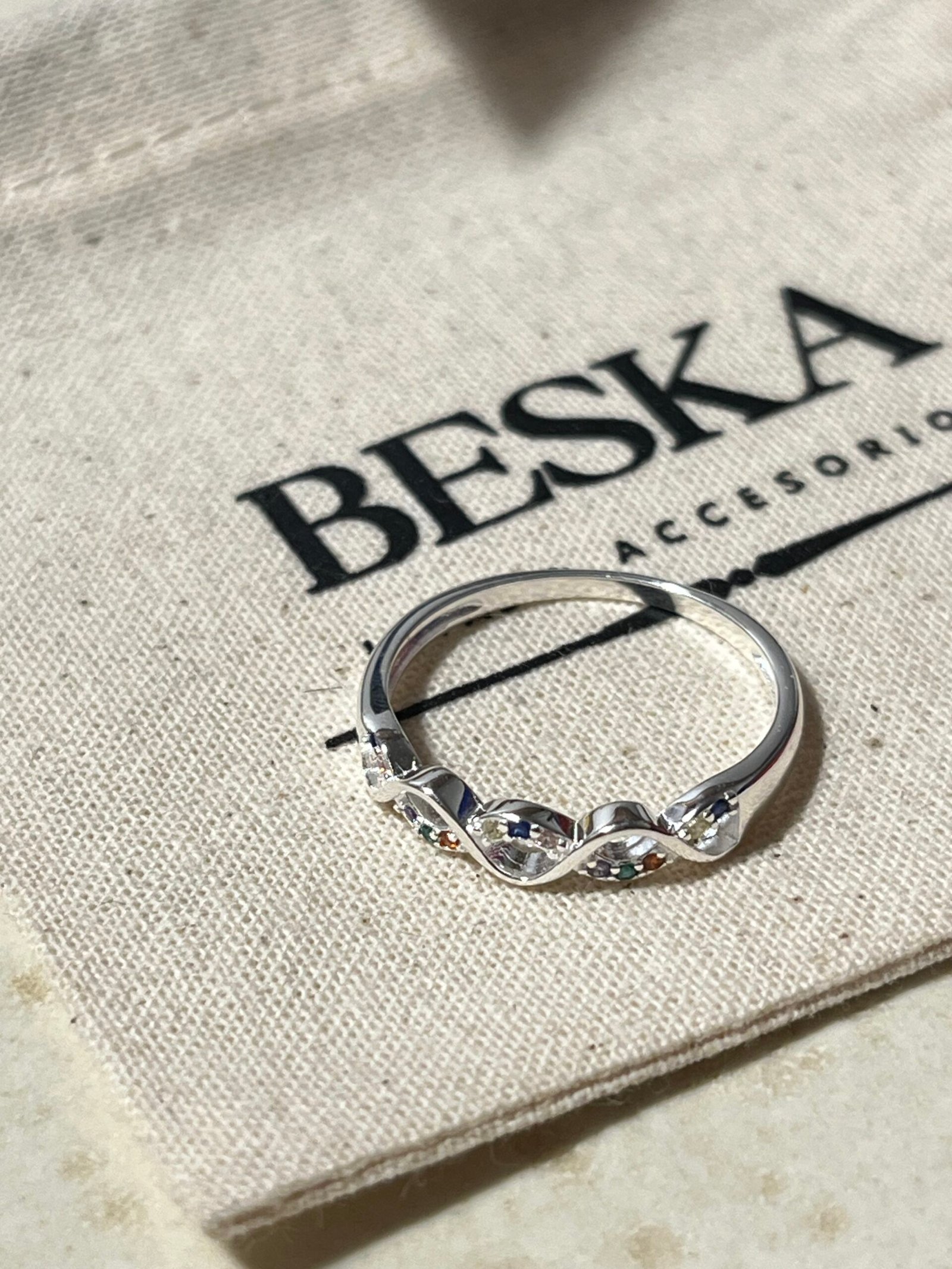 El Anillo Infinito Arco Iris, cuenta con unos delicados circones de colores que adornar su forma de símbolo infinito. Perfecto para llevar en ocasiones especiales o como un delicado complemento diario.