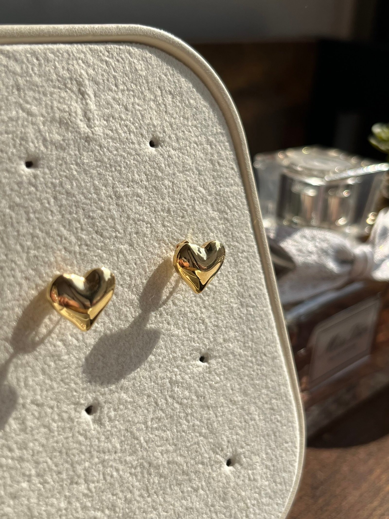 Aros Golden Heart pegados, bañado en oro 18k, hipoalergénicos y libre de níquel.