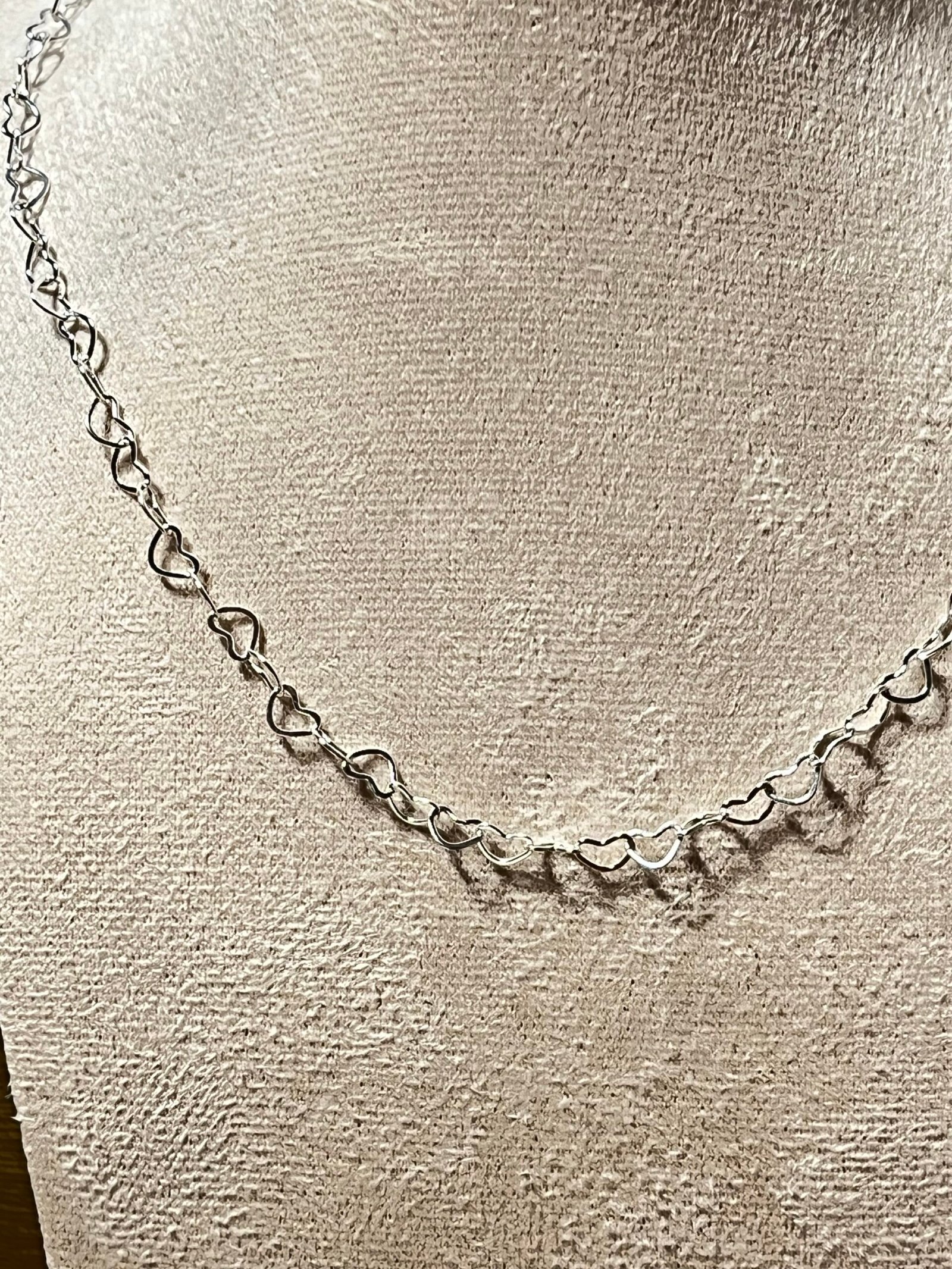 El collar Love, cuenta con pequeños corazones entrelazados, un accesorio delicado y combinable con otros collares. Perfecto para agregar a tu colección para uso diario.